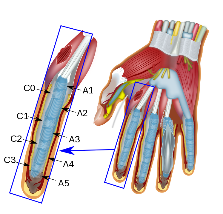 위 그림에서 보시면 손바닥을 지나는 하얀색 고무줄 같은 것이 인대이고