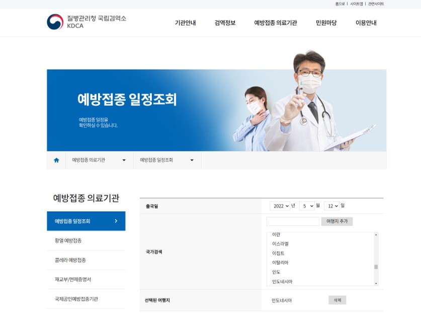 예방접종일정조회 < 예방접종 의료기관 < 질병관리청 국립검역소 (kdca.go.kr)