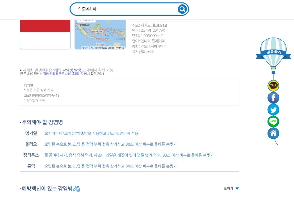 인도네시아 등 해외여행을 가기전 반드시 들러야 할 웹사이트는 질병관리청 사이트입니다.