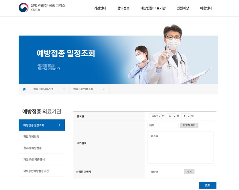예방접종일정조회 < 예방접종 의료기관 < 질병관리청 국립검역소 (kdca.go.kr)