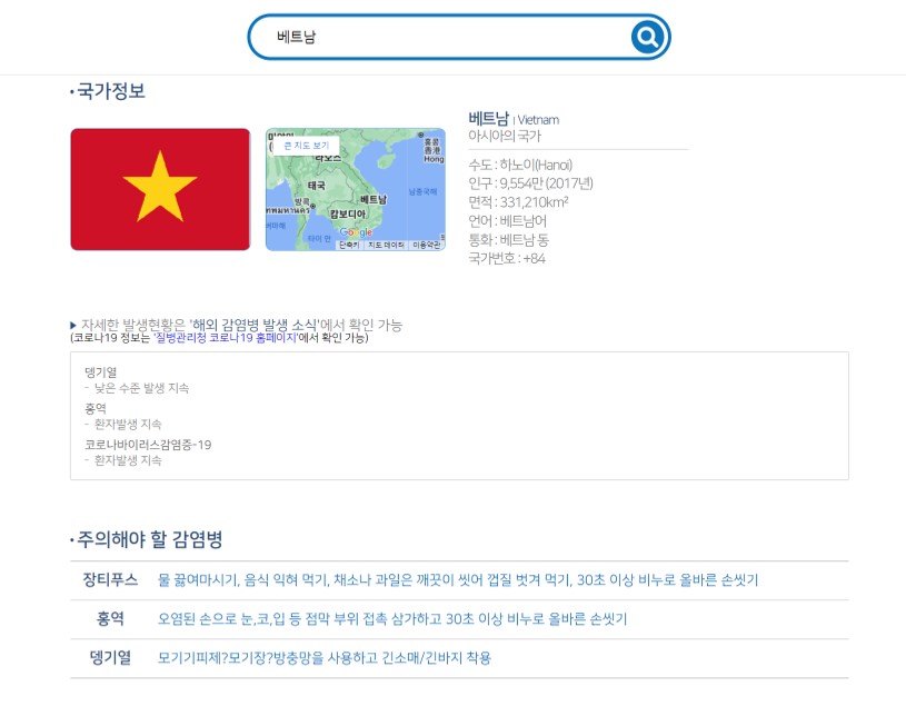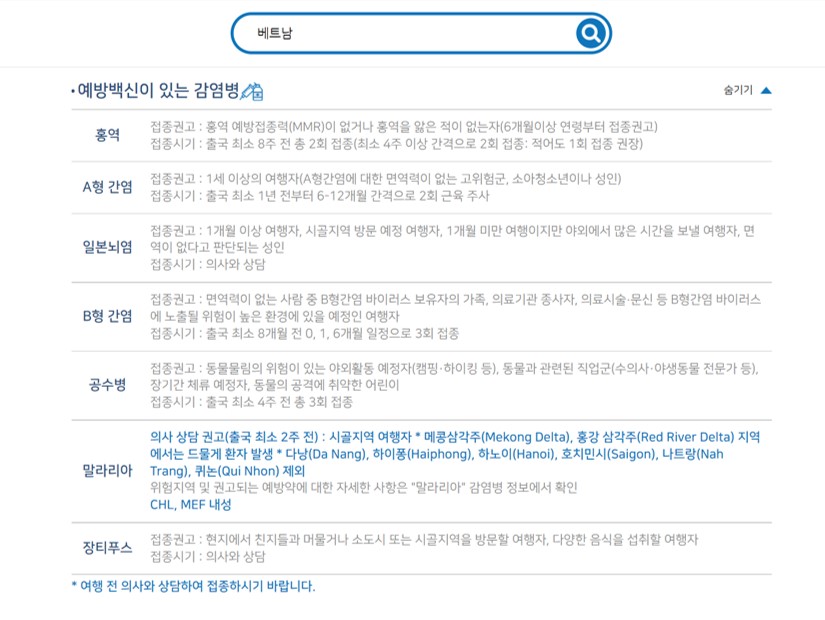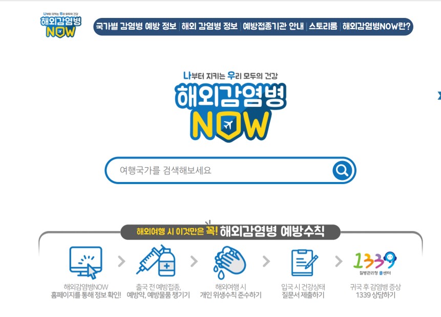 베트남 등 해외여행을 가기전 반드시 들러야 할 웹사이트는 질병관리청 사이트입니다.