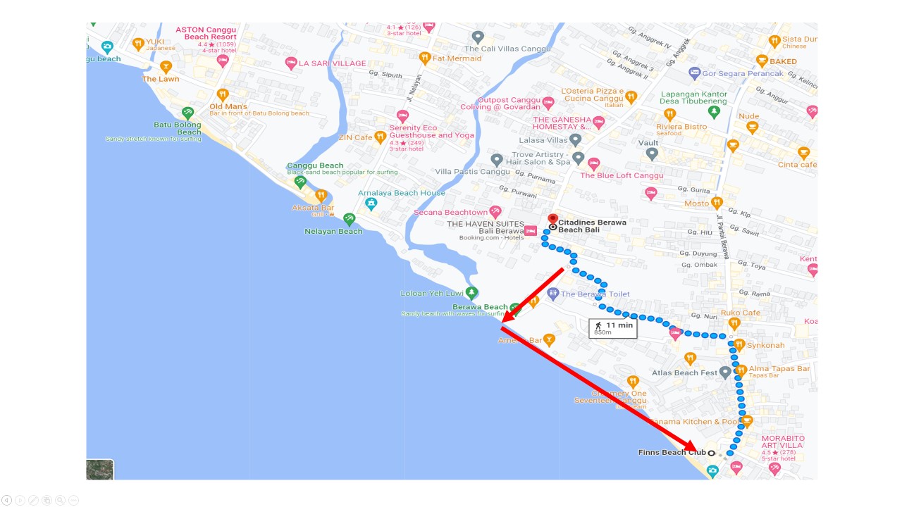 호텔에서 바투볼롱비치까지 바이크로 15분 정도 걸립니다.